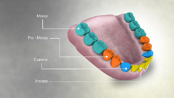 The maxillary teeth are the maxillary central incisors (teeth 8 and 9 in the diagram), maxillary lateral incisors (7 and 10), maxillary canines (6 and 11), maxillary first premolars (5 and 12), maxillary second premolars (4 and 13), maxillary first molars (3 and 14), maxillary second molars (2 and 15), and maxillary third molars (1 and 16). The mandibular teeth are the mandibular central incisors (24 and 25), mandibular lateral incisors (23 and 26), mandibular canines (22 and 27), mandibular first premolars (21 and 28), mandibular second premolars (20 and 29), mandibular first molars (19 and 30), mandibular second molars (18 and 31), and mandibular third molars (17 and 32). Third molars are commonly called "wisdom teeth" and may never erupt into the mouth or form at all.