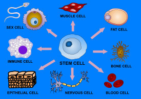 Induced Pluripotent Stem Cells (IPSCs) from multipotent blood/skin cells regressed to a pluripotent state can be used to develop/differentiate into different specialized cell lines from immortal stem cells as nervous, muscle, sexual, fat, bone, immune, epithelial/skin cells. Stem cells have grown telomeres, DNA cap for unlimited cell division.